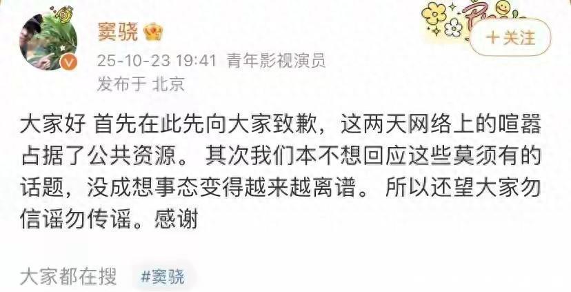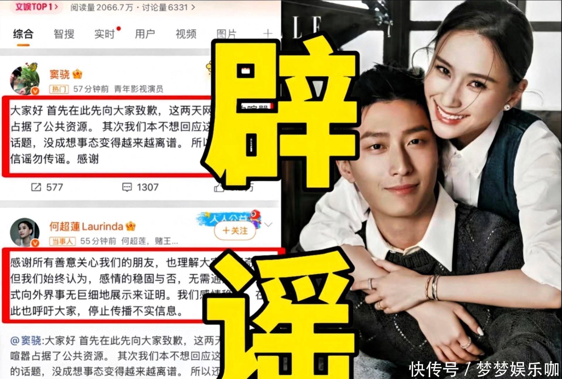 窦骁微博更新瞬间引爆热搜!23日晚7点41分,他果断发文辟谣:“大家好,首先在此向大家致歉......”紧接着,何超莲秒速回应:“感谢所有善意关心我们的朋友......”
